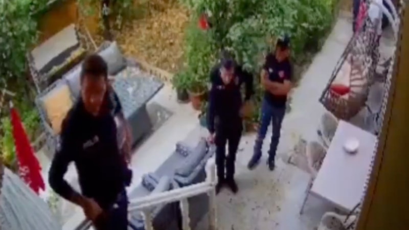 Görüntülerde polis memuru ile sağlık ekiplerinin kapıda beklediği sırada şüphelinin bıçakla çıktığı, polis memurunu kaçmaya çalıştığı, şüphelinin polisi sırtından bıçakladığı ve vurularak etkisiz hale getirildiği yer alıyor.