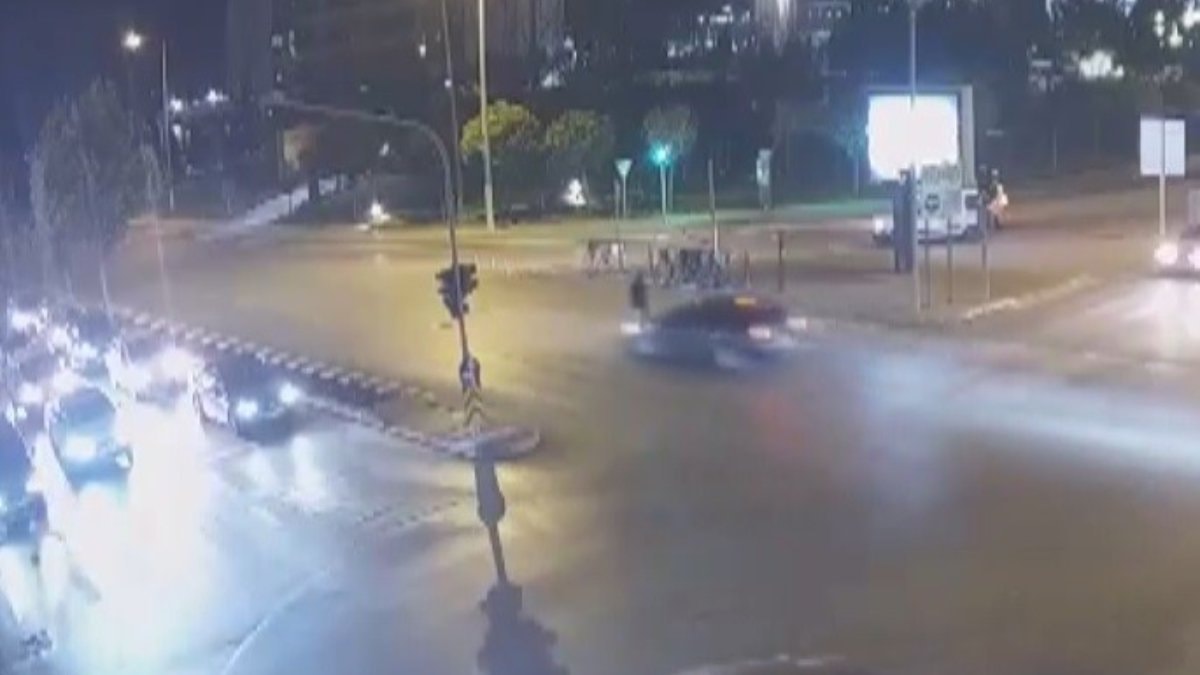 Görüntülerde yolun karşısına geçmeye çalışan bir yayaya otomobilin çarpma anı yer aldı. Çarpmanın etkisiyle yaya yol kenarına savruldu.