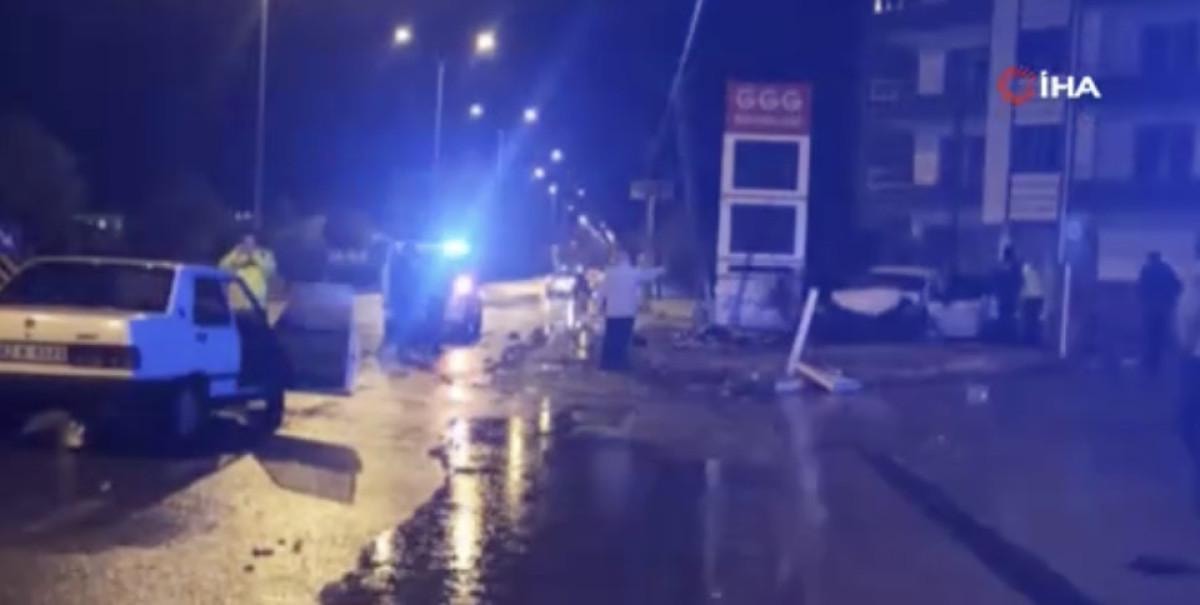 Çarpmanın etkisi ile Tofaş'ın çarptığı otomobil önce elektrik direğine daha sonra ise bir akaryakıt istasyonun reklam panosuna çarparak durabildi.