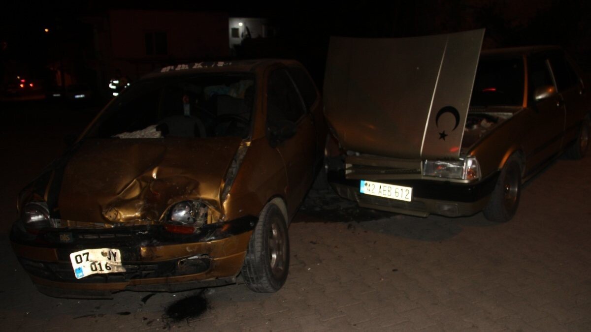 Konya'nın Hacıakif Mahallesi Şehit Hasan Metli Caddesi üzerinde, M.E. yönetimindeki 07 JY 016 plakalı otomobil, karşı yönden gelen 42 AEB 612 plakalı otomobille çarpıştı.
