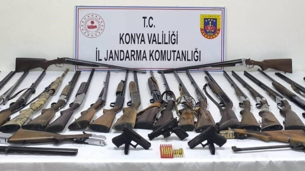 Konya'da jandarma ekiplerince belirlenen bir iş yerine yapılan baskında çok sayıda silah bulundu.