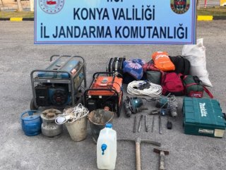 Konya’nın Derbent ilçesinde İl Jandarma Komutanlığı ekiplerinin yaptığı çalışmalarda tarihi eser aramak için kaçak kazı yapıldığı bilgisi alınması üzerine ekipler harekete geçti.