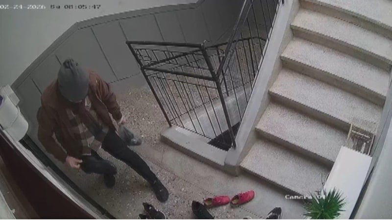 Güvenlik kamerasına yansıyan görüntülerde, kimliği belirsiz bir kişinin daire önüne gelerek tek tek ayakkabıların markalarına baktığı, beğenmemesi üzerine ayakkabıları bırakarak dolap üzerindeki süs çiçeğini aldıktan sonra ayakkabı dolabı içerisindekileri de kontrol edip dairenin kapısından ayrıldığı görülüyor.