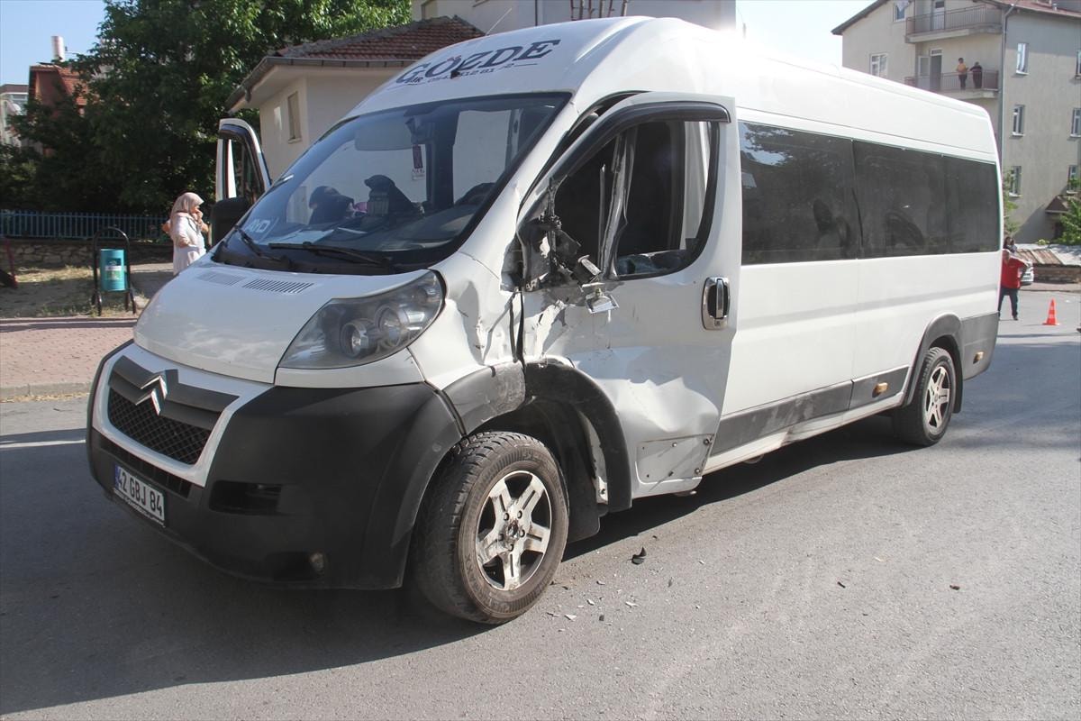 Konya'nın Beyşehir ilçesi Yeni Mahalle'de 15 yaşındaki D.A.O.'nun kullandığı motosiklet, öğrenci servis minibüsüne yandan çarptı.
