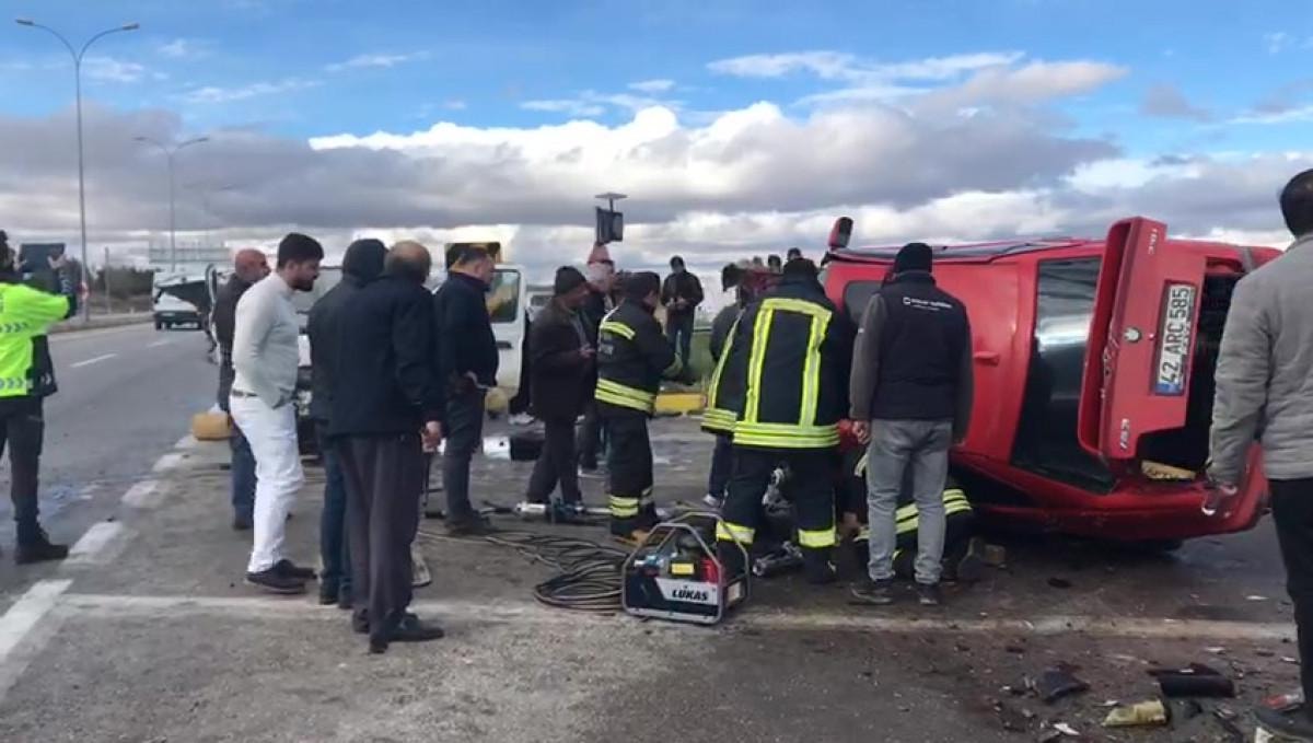 Konya'nın Kadınhanı ilçesi çıkışında Ali Rıza Biner’in kullandığı minibüs, İdris Çakmak idaresindeki otomobille kavşakta çarpıştı.