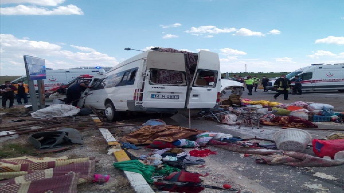 Şanlıurfalı tarım işçilerini taşıyan Ahmet Okal yönetimindeki 14 M 0891 plakalı minibüs ile Ufuk Demirtaş idaresindeki 42 RK 320 plakalı tır, Yunak ilçesi Ankara karayolu üzeri Birimler Dörtyol mevkisindeki kavşakta çarpıştı. Çarpışmanın şiddetiyle minibüs hurdaya dönerken, tır da devrildi.