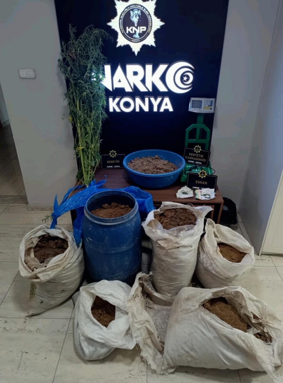 Konya İl Emniyet Müdürlüğü Narkotik Suçlarla Mücadele Şube Müdürlüğü ekiplerinin yürüttüğü operasyonlarda, çok sayıda uyuşturucu madde ele geçirildi.
