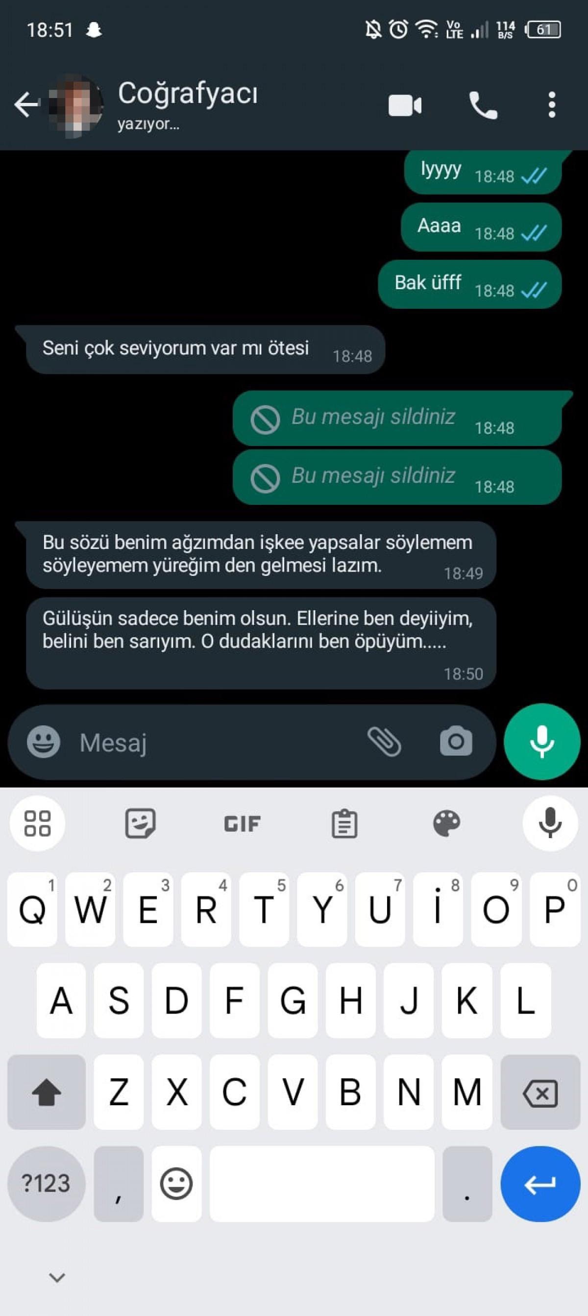 S.D.'nin 'WhatsApp' ile sosyal medya hesabına M.K. tarafından gönderilen cinsel içerikli mesajlar da savcılığa delil olarak sunuldu.