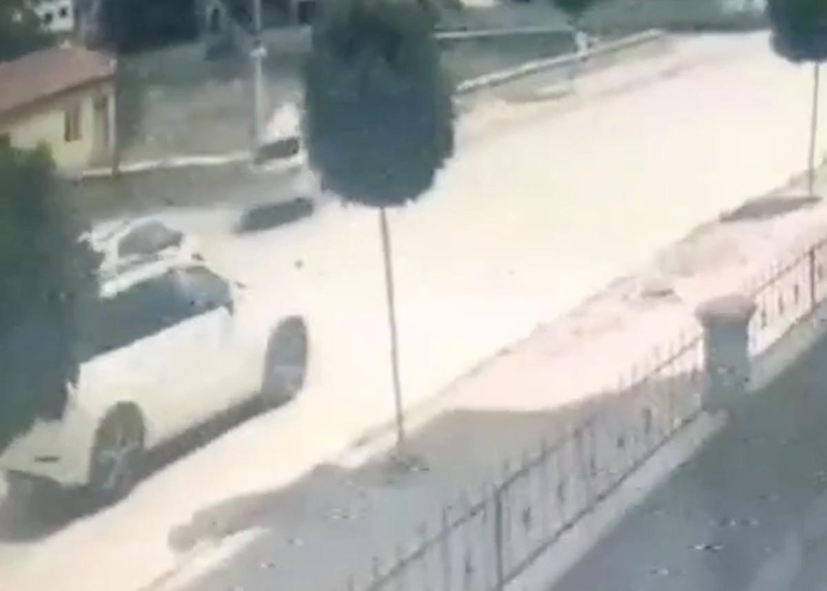 Kaza anı ise bir iş yerinin güvenlik kamerasına yansıdı.