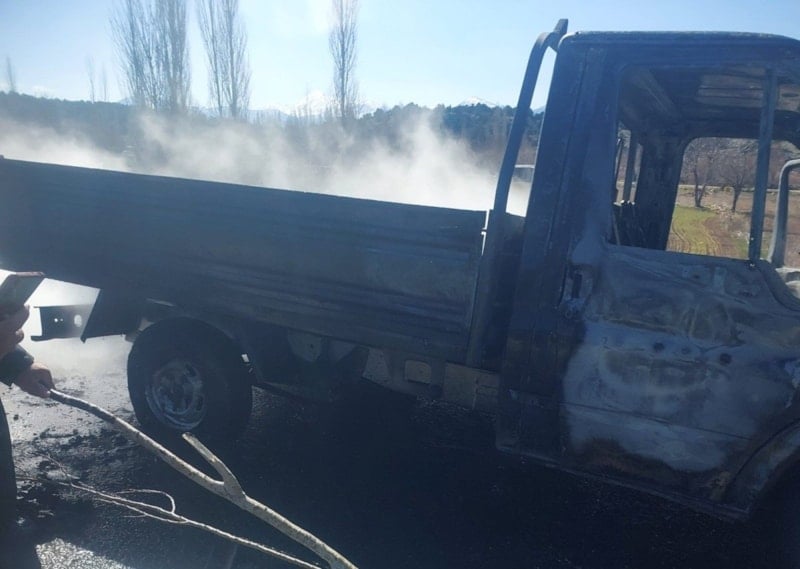 Durumun bildirilmesi üzerine olay yerine itfaiye, jandarma ve sağlık ekipleri sevk edildi. İtfaiye ekiplerinin müdahalesiyle yangın söndürülürken kamyonetin büyük bölümü, yanarak kullanılamaz hale geldi.