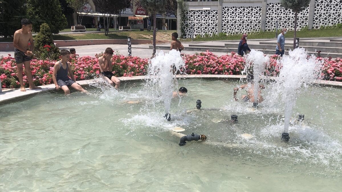 Sıcaklığın 30 dereceyi aştığı şehirde çocukların, hem serinlemek hem de eğlenceli zaman geçirmek için doluştuğu süs havuzlarından biri de Necmettin Erbakan Üniversitesi Parkı'ndaki havuz oldu.