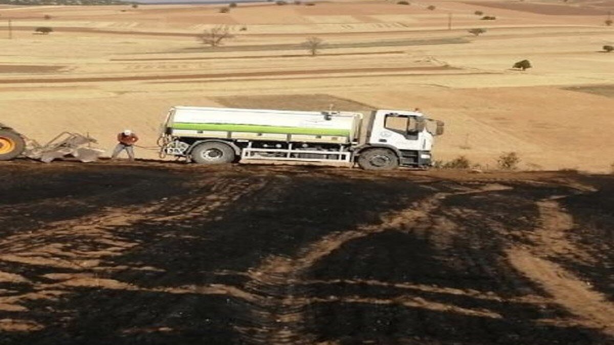 Tarlayı saran alevler ise çevre belediyelerinin itfaiye ekiplerinin de müdahalesiyle söndürüldü.