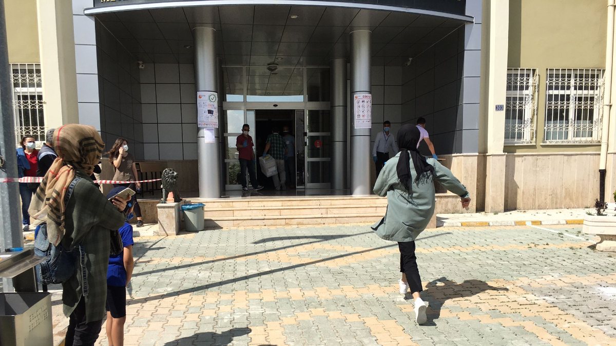 Sınav heyecanını paylaşan ailelerin okul bahçesine girişlerine izin verilmedi.