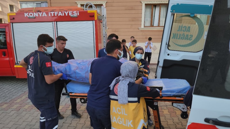 İhbar üzerine olay yerine gelen sağlık görevlileri durumu ağır olan Aynur Özkağnıcı’yı ambulansla Konya Şehir Hastanesi’ne götürdü.