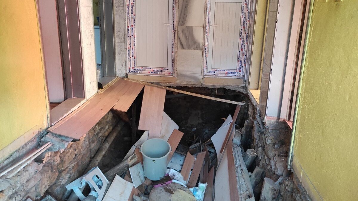 Evin salonunun tabanının çökmesinin ardından, belediye ekiplerinin evde yaptığı incelemede çökmenin nedeninin bodrum katında ve yapıda oluşan rutubetten kaynaklandığını belirledi.