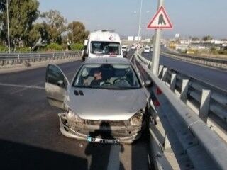 Otomobilin hurdaya döndüğü kazada araç sürücüsü Onur Arab otomobilden burnu bile kanamadan çıkarken, köprülü kavşakta trafik uzun süre tek şeritten verildi.