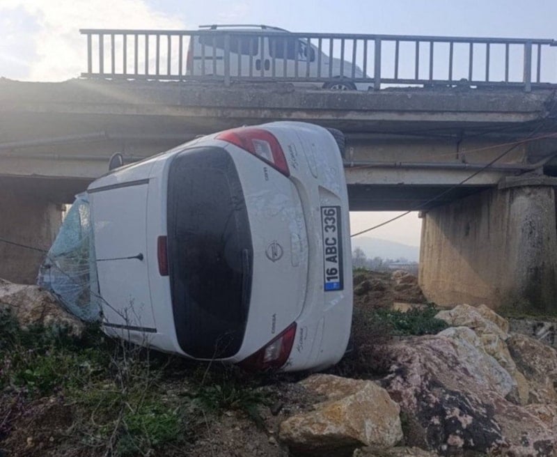 Buse D. (23) yönetimindeki 16 ABC 336 plakalı araç, köprü üzerindeyken demir korkuluklara çarptı. Çarpmanın şiddetiyle korkulukları kıran araç, köprüyü aşarak dere yatağına savruldu.