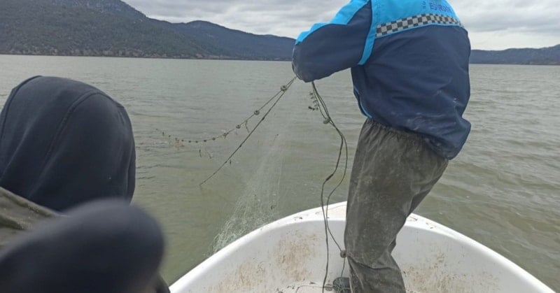 Isparta’nın Eğirdir ilçesinde yer alan Kovada Gölü Milli Parkı’nda yapılan denetimlerde, yasa dışı olarak suya bırakılan 600 metre uzunluğundaki uzatma ağı ele geçirildi. Ağda yakalanan canlı balıklar ise yeniden göle bırakılarak doğal yaşamın korunması sağlandı.