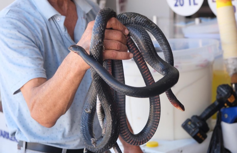 Öte yandan Osman Aslan, geçtiğimiz gün Adana Otogarı'nda koynunda beslediği yılanlarla şov yaparken elindeki yılan tarafından kaşından ısırıldı. O anlar cep telefonu kamerasıyla görüntülenirken video, sosyal medyada milyonlarca kez izlenip beğenildi.