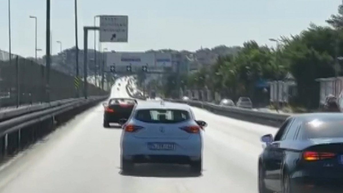 Trafiği tehlikeye atan konvoydaki araçların o anları, diğer sürücüler tarafından cep telefonu kamerası ile anbean görüntülendi.