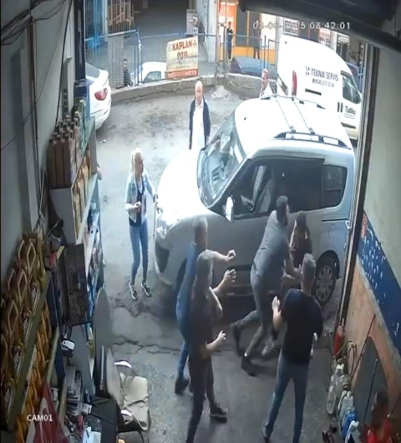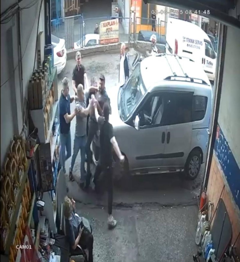 Kendi araçlarını park etmek isteyen bu kişilerle çıkan sözlü tartışma kısa sürede alevlendi ve taraflar birbirine saldırdı. Kavga, çevredeki esnafın müdahalesiyle sona erdirilirken, olay anı güvenlik kameralarına yansıdı. Tarafların karşılıklı şikayette bulunmadığı öğrenildi.