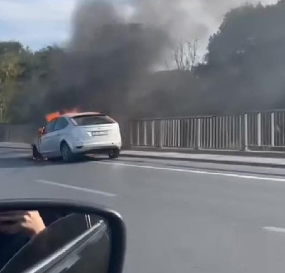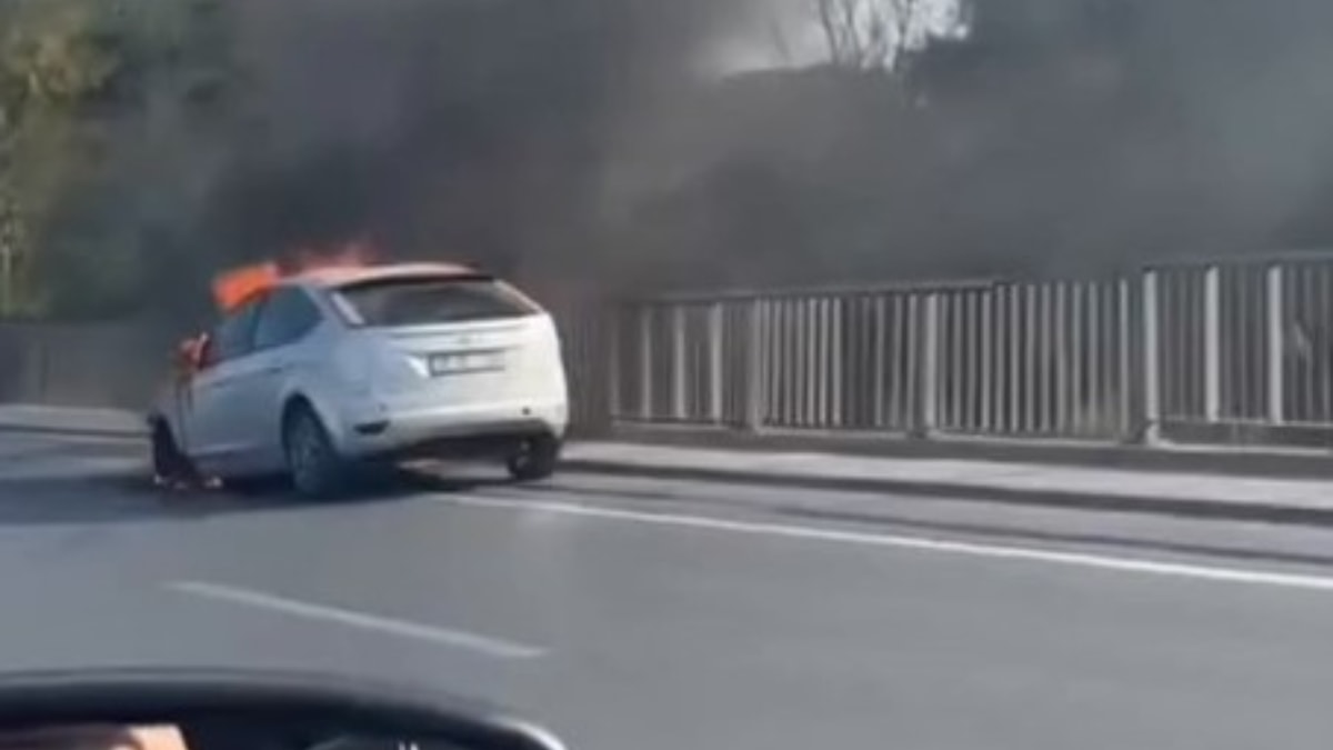 Bugün 17.30 sıralarında İstanbul D-100 Karayolu Atatürk Havalimanı Mevkii, Bahçelievler istikametinde ilerleyen otomobil sürücüsü, aracın motor kısmında çıkan dumanları fark ederek aracını emniyet şeridine çekti.