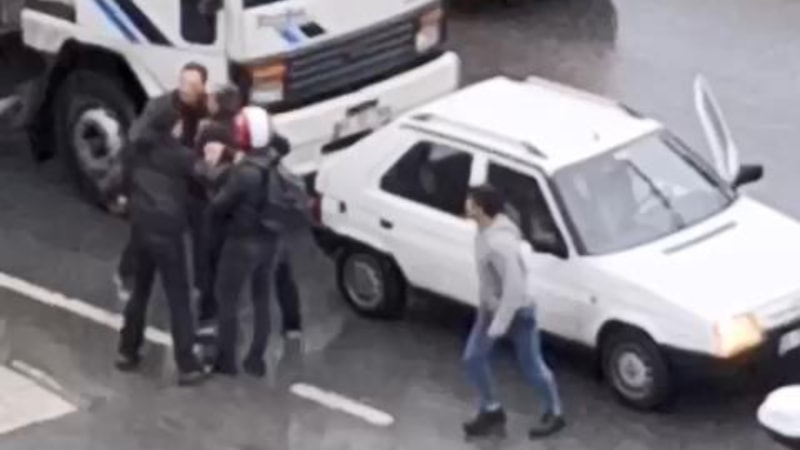 Uzun süre kavga eden tarafları yoldan geçen diğer sürücüler ayırıyor.