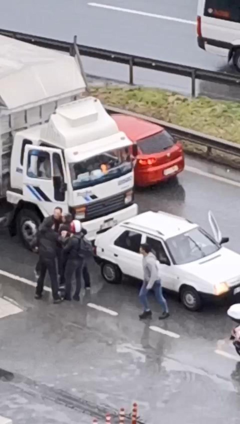 Araçlarından inen sürücüler arasındaki tartışma kısa sürede kavgaya dönüştü. Diğer sürücüler, kavgayı ayırmaya çalıştı.