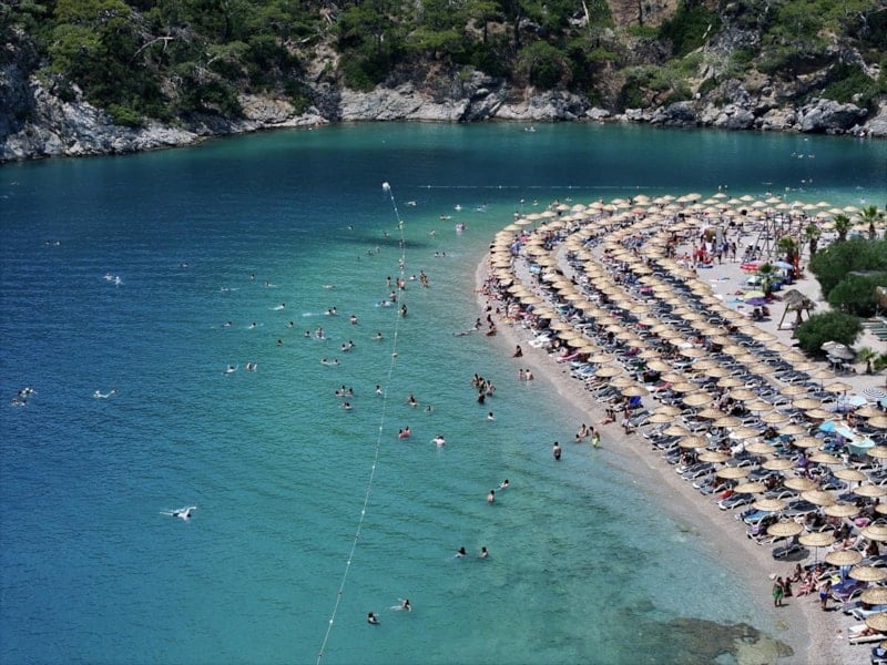 Türkiye'nin önemli turizm merkezlerinden Fethiye'de, Kurban Bayramı'nın son gününde tatilcilerin, sahillerde oluşturduğu yoğunluk devam ediyor.