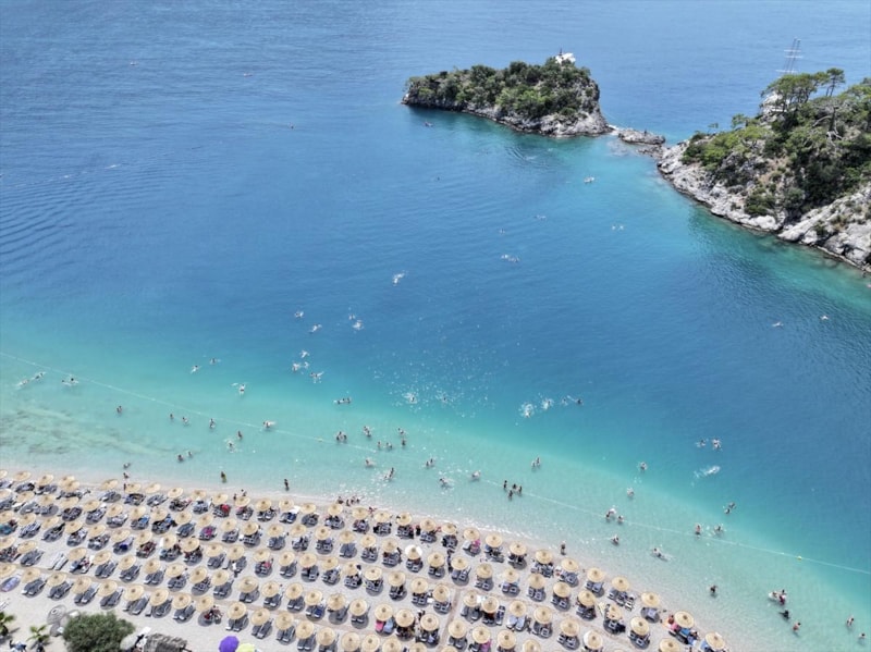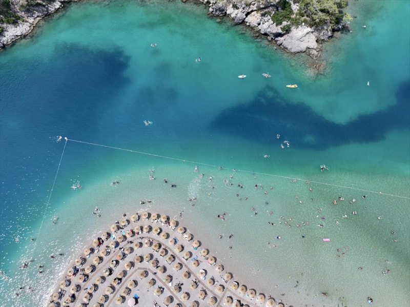 Fethiye ilçesinde tatilciler, Ölüdeniz Mahallesi'ndeki Belcekız ile Kumburnu plajlarında yoğunluğa neden oldu.