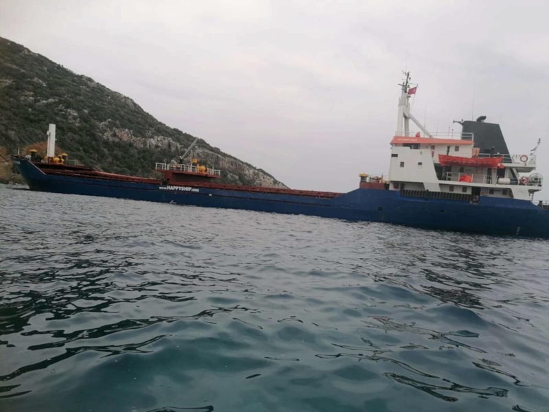 Ukrayna'dan Mersin'e yük götüren Belize bayraklı "Happy Aras" isimli yük gemisi, Murdala Koyu yakınlarında arızalanarak karaya oturdu.