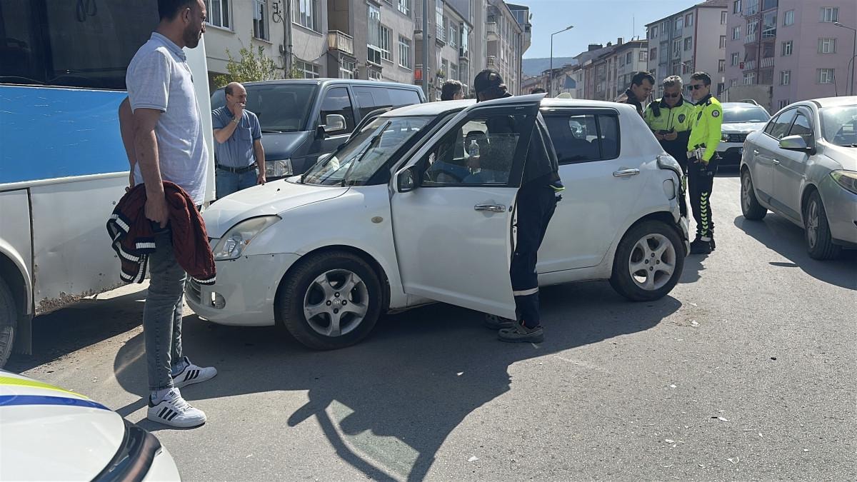 Kütahya merkez Meydan Mahallesi'nde İ.A. (49) yönetimindeki otomobil, sürücüsünün direksiyon kontrolünü yitirmesi sonucu park halindeki halk otobüsüne çarptı.