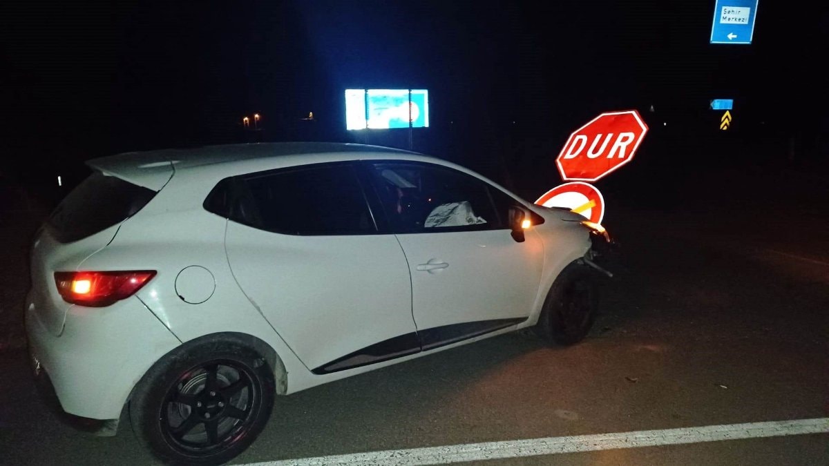 Kütahya'da dün gece Murat. A. idaresindeki otomobil, Hisarcık-Simav karayolunun ilçe girişindeki kavşakta direksiyon hakimiyetini kaybederek, 'Dur' levhasına çarptı.