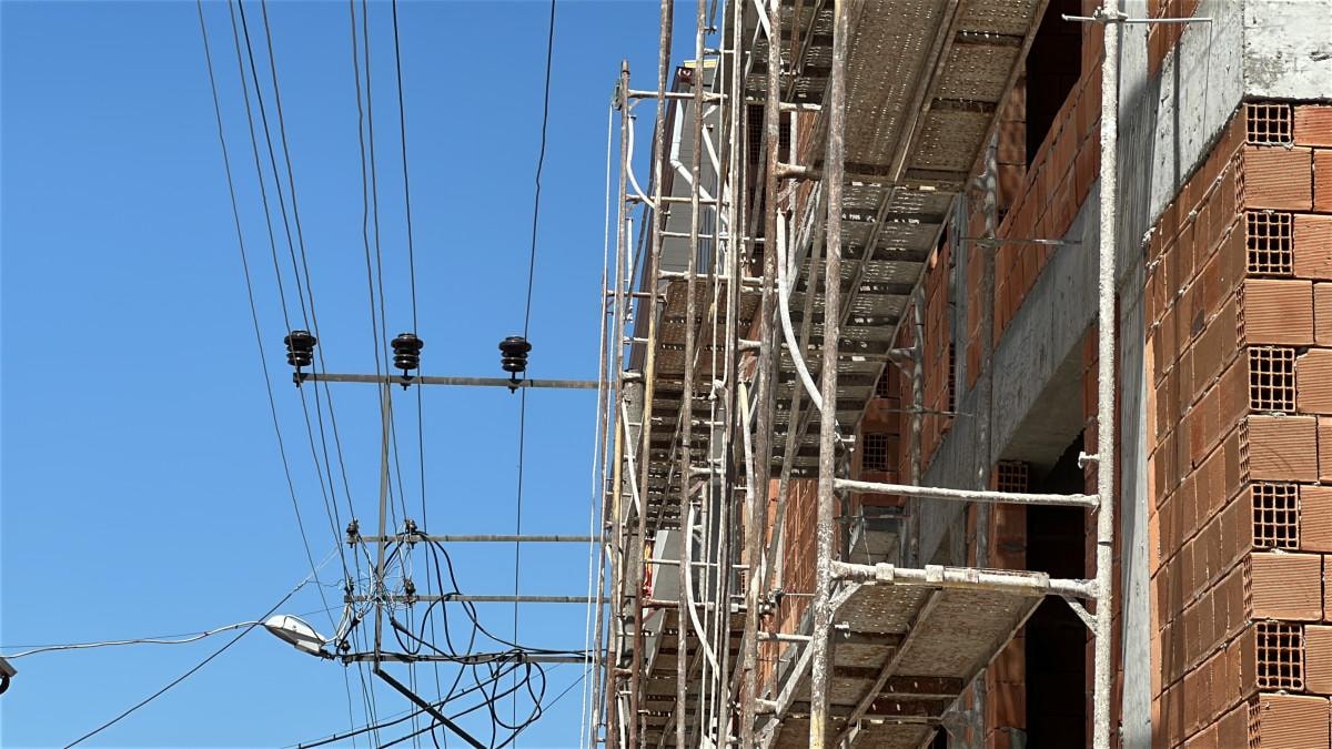 Kütahya merkez Yunus Emre Mahallesi'nde işçi Ş.B., inşaat halindeki binanın dış cephe kaplaması için iskele kurdu.