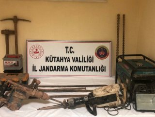 Jandarma zanlıların kullandığı patlayıcı, jeneratör, kırıcı delici matkap ve akülü iki aydınlatma sistemi el koydu.