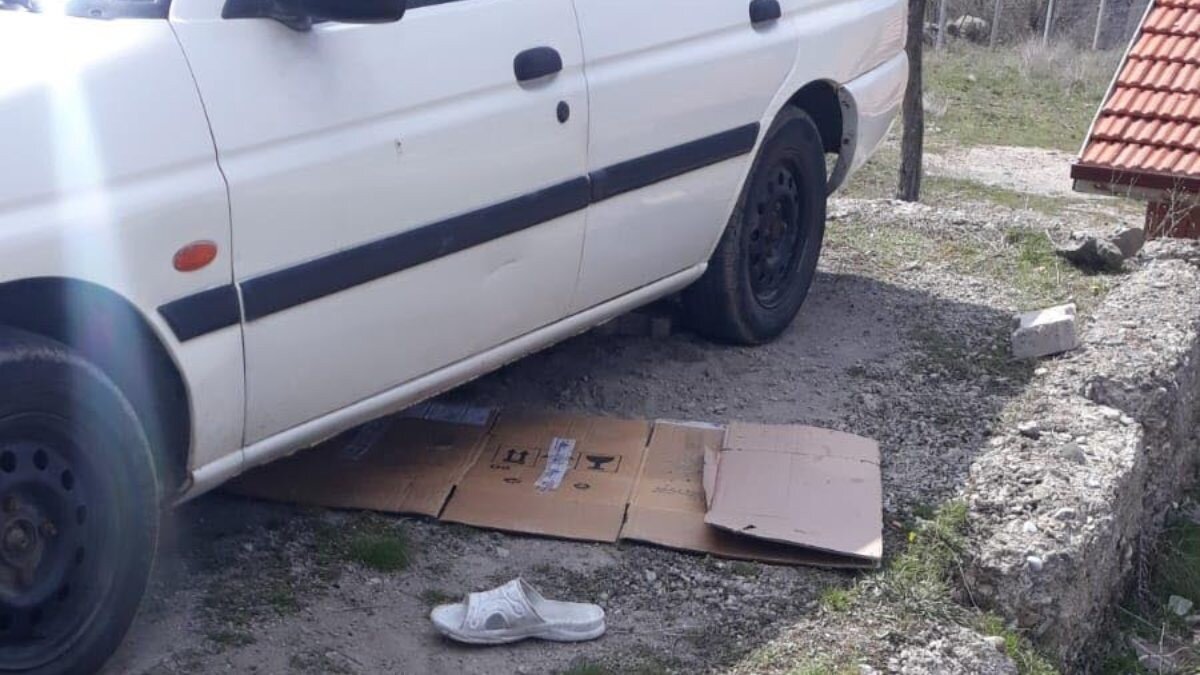 Kütahya'nın Emet ilçesi Dereli köyünde oturan Hüseyin Özkaya, muayene zamanı yaklaşan otomobilini kriko ile yükselterek altına girdi ve kontrol etmek istedi.