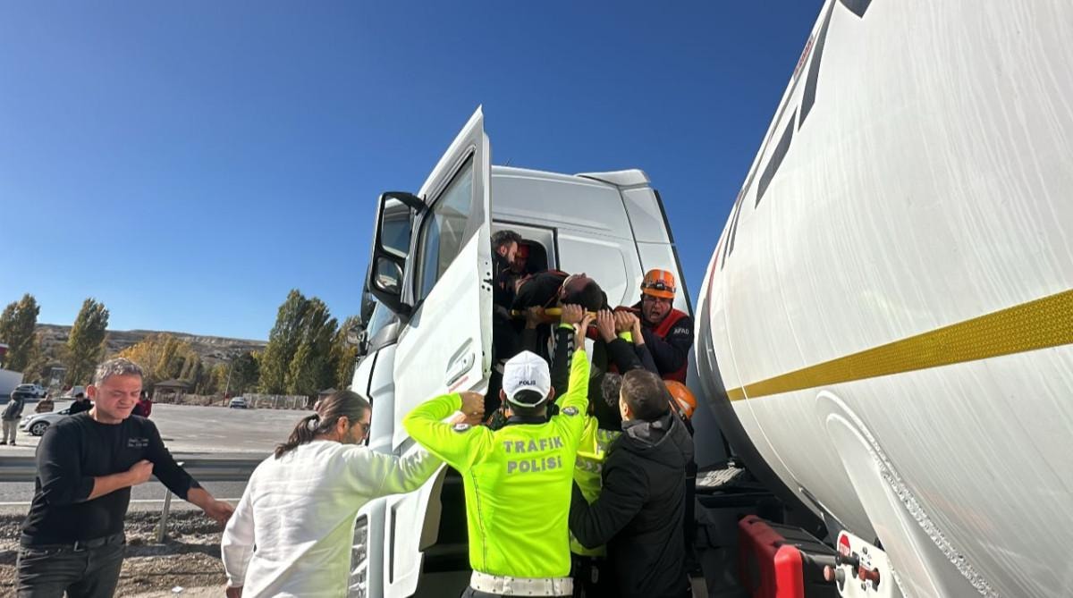 Sürücü araçta sıkıştı. Çevredekilerin ihbarı üzerine kaza yerine polis, jandarma, sağlık ve AFAD ekipleri sevk edildi.