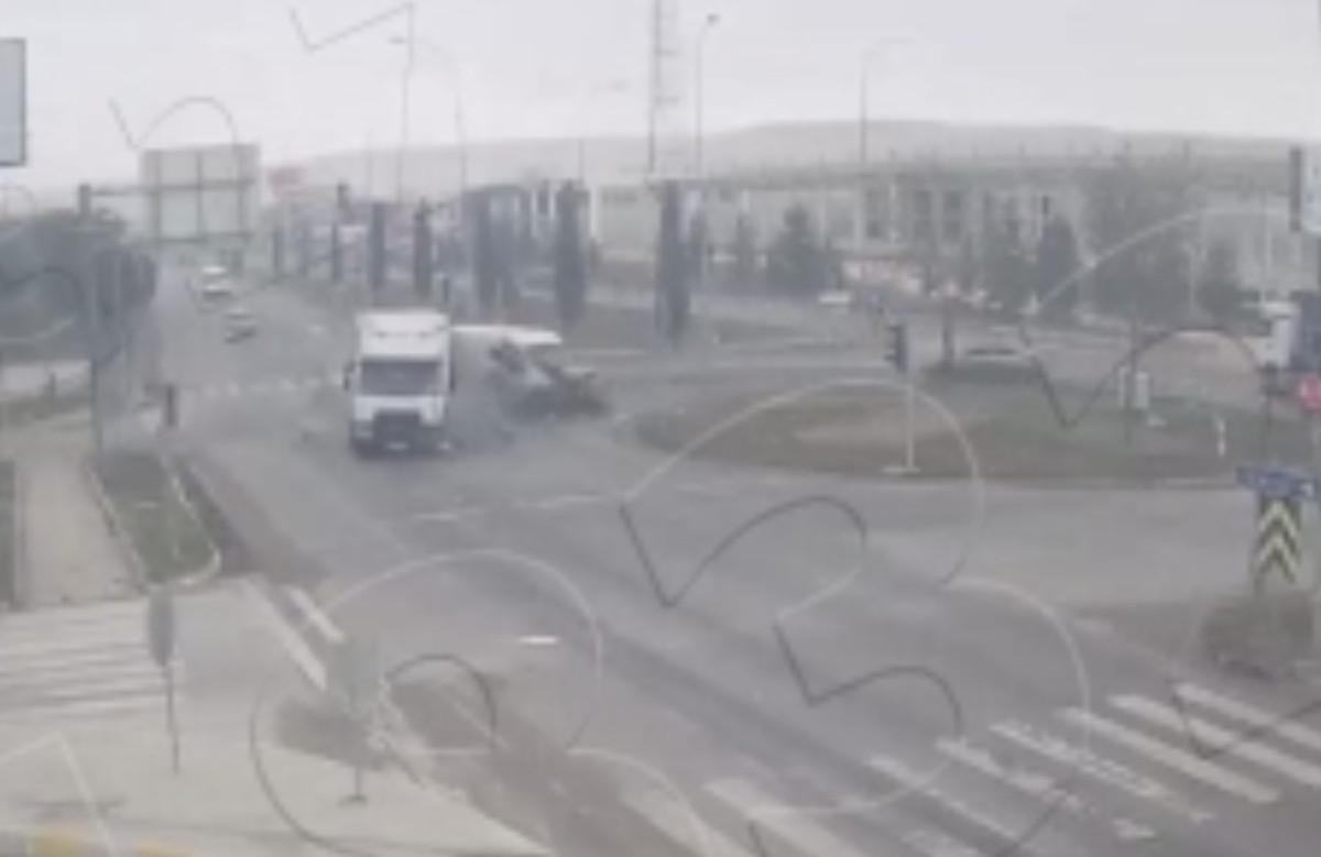 Kütahya'da kavşaktan ana caddeye çıkmak isteyen bir otomobilin, hızla gelen motosikletle çarpışması sonucu meydana gelen kaza kameralara yansıdı.