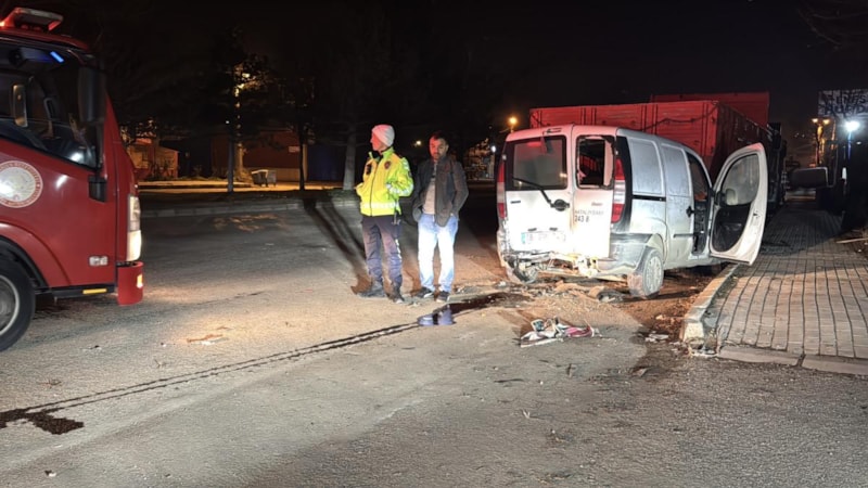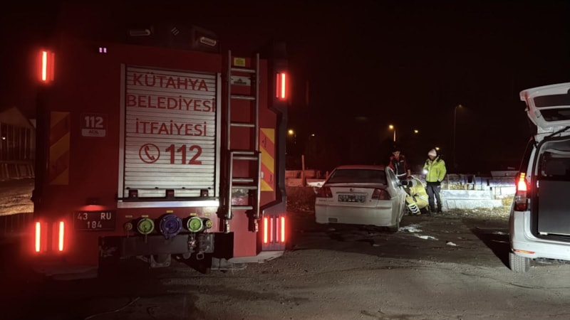 Kütahya'da sürüsünün kimliğinin belirlenemediği otomobil, yol kenarında park halindeki hafif ticari araca çarptı.