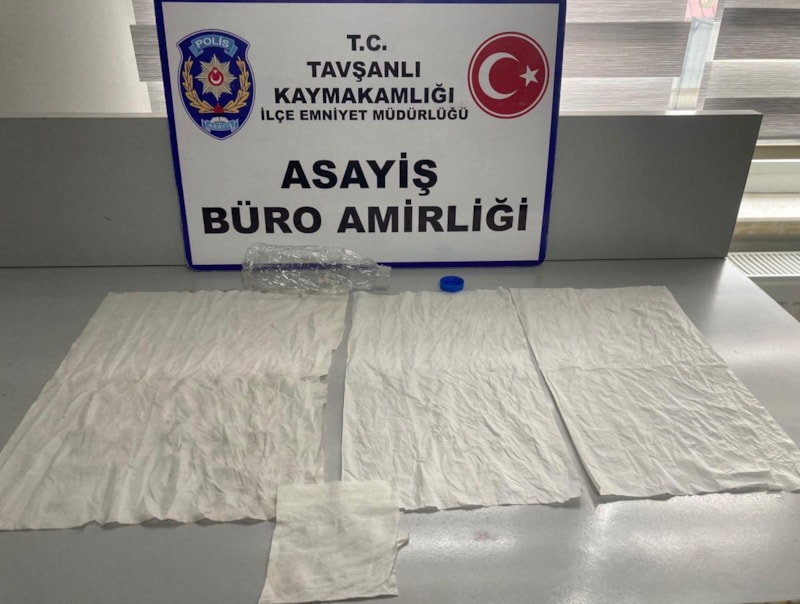 Tavşanlı ilçesinde polis ekiplerinin durdurduğu aracın gizli bölmesinde peçeteye emdirilmiş sentetik uyuşturucu ele geçirildi.