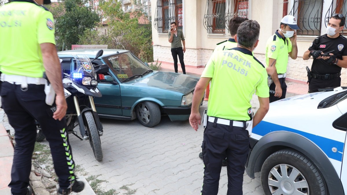 Motosikletli şahin timi tarafından Pirler Mahallesi'nde yakalanan aracın sürücüsü M.D.'nin ehliyetinin olmadığı, aracın plakasının 43 ABB 347 olduğu ortaya çıktı.