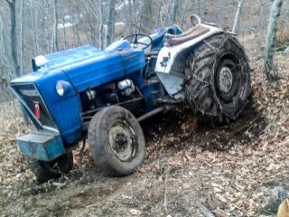 Domaniç Orman İşletmesi adına Gürgen yayla mevkisinde doğal gençleştirme kesimi yapan İbrahim Doğan'ın (64) kullandığı traktör, buz ve kar nedeniyle kayarak takla attı.
