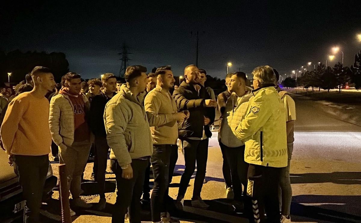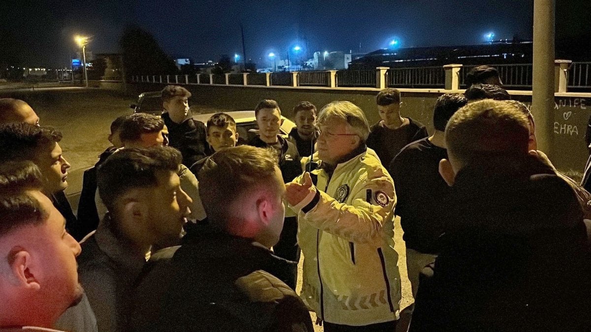 O esnada yarışmak için bir araya gelen gençleri etrafına toplayan trafik polisi, şu sözleri söyledi: