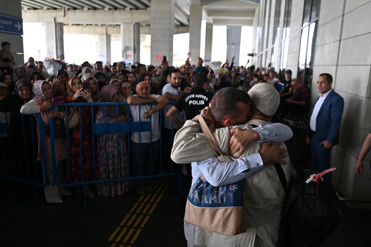 Hac ibadetlerini tamamladıktan sonra Türkiye'ye dönen hacılar, uzun süre yakınlarıyla kucaklaşarak hasret giderdi.