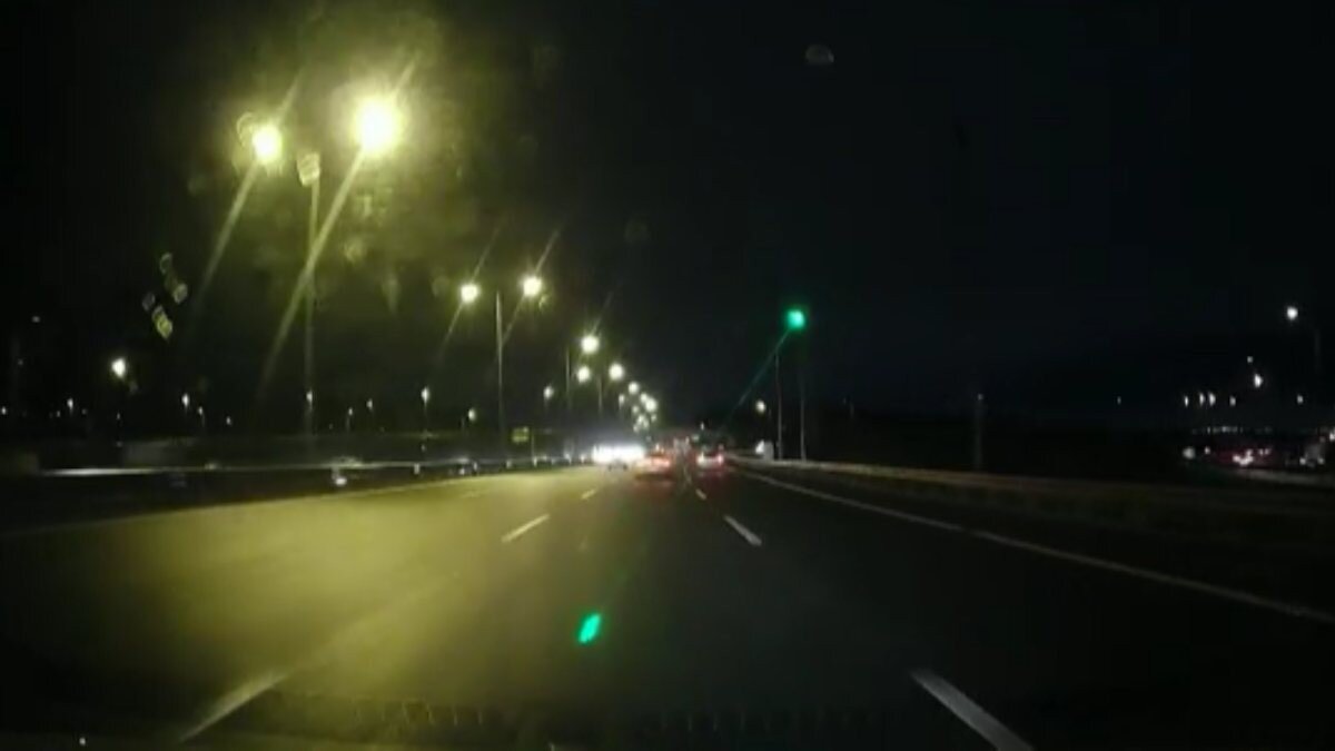 İstanbul'da Kuzey Çevre Otoyolu'nu Şile yönünde yola yansıyan yeşil ışık dikkat çekiyor.