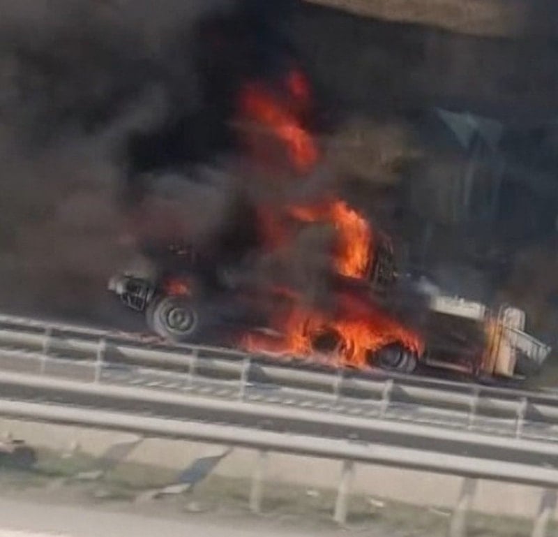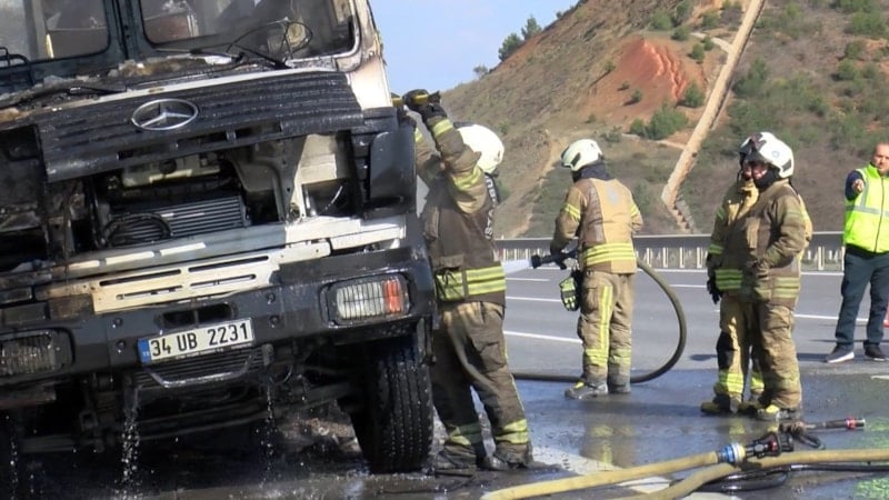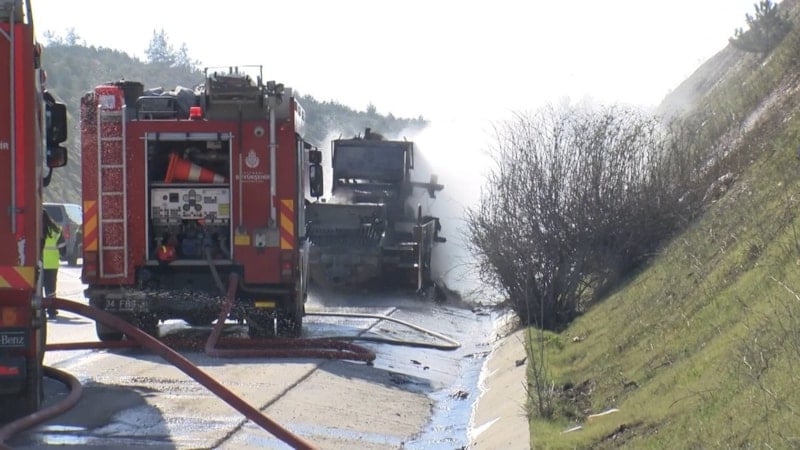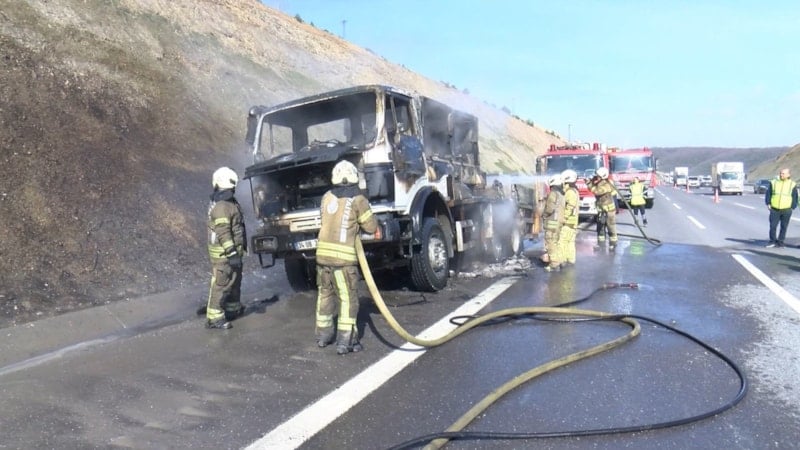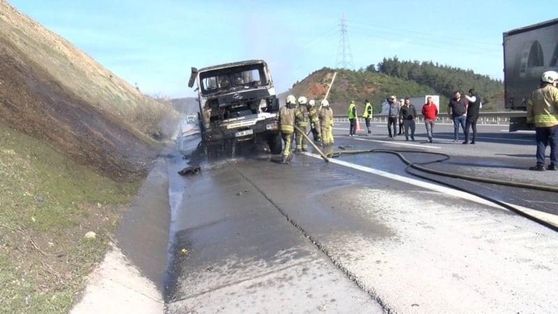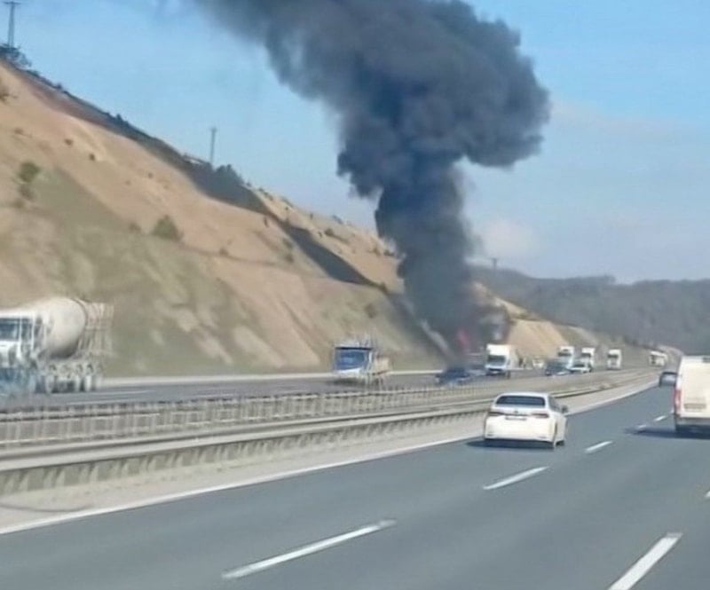Kuzey Marmara Otoyolu’nda, inşaat şantiyesinde kullanılan bir beton pompası aniden alev aldı. Olay kısa sürede büyüyerek yangın halini aldı ve çevrede paniğe yol açtı.