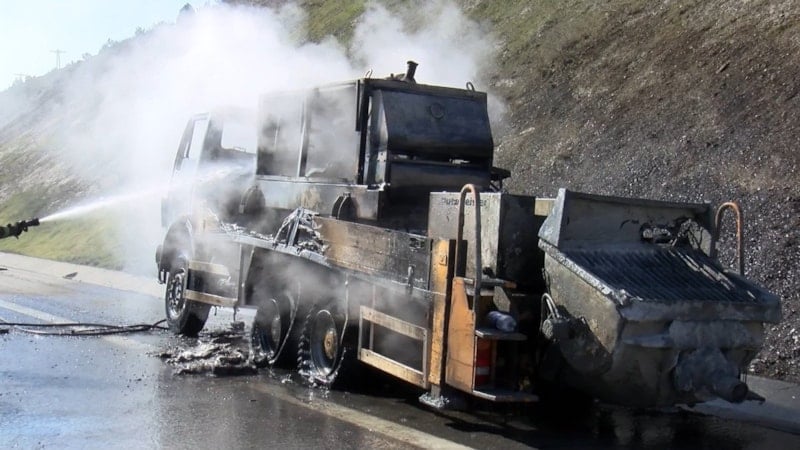 İhbar üzerine bölgeye sevk edilen itfaiye ekipleri, yangını kontrol altına alarak söndürdü. Beton pompası, yangın nedeniyle kullanılamaz hâle geldi.