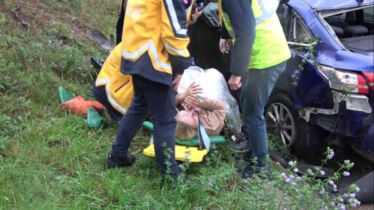 Kontrolden çıkan araç, otoyol kenarındaki bariyerleri aşarak çayırlık alana savruldu.