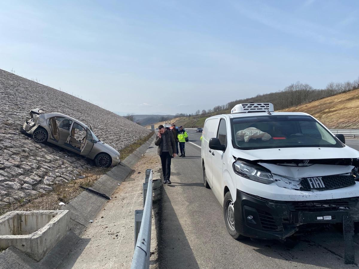 Otoyolun Ankara istikameti Karaabdülbaki köyü mevkiinde, sürücüleri öğrenilemeyen panelvan araç ile otomobil çarpıştı.