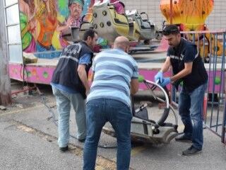 Bir parmağı kopan yaralı çocuk tedavi altına alınırken, polis olayın yaşandığı lunaparkta inceleme yaptı.